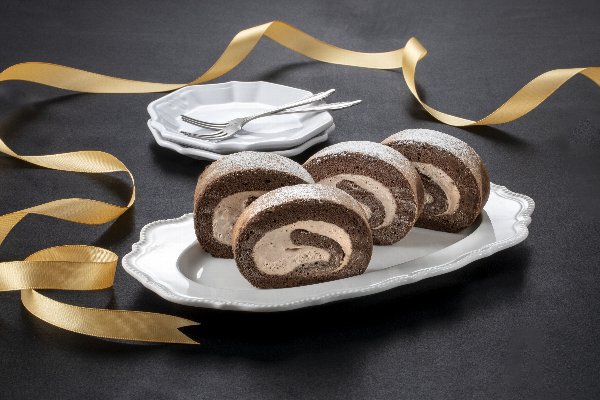 ブラックココアスポンジでチョコホイップクリームを巻きました。
