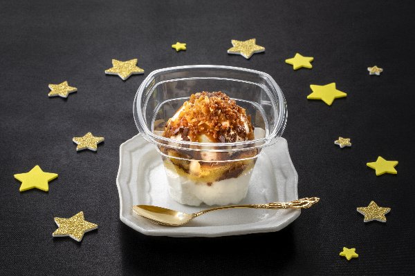 なめらかなチーズケーキムースにチョコレートやカラメルチップ、カラメルソースをトッピングしました。