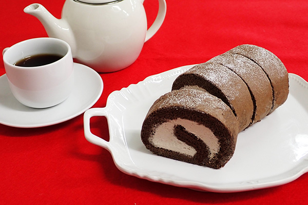 しっとりと焼き上げたガトーショコラ生地でチョコホイップを巻きました。