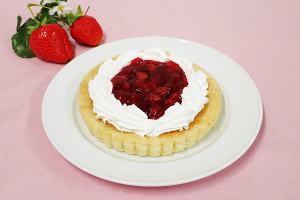 発酵バター香るパイタルトに、カスタードとホイップを絞り、中心に苺ダイスと苺ソースを盛り付けました。